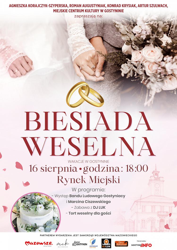 W najbliższą sobotę, 16 sierpnia, o godzinie 18:00 na Rynku Miejskim odbędzie się "Biesiada Weselna" organizowana w ramach cyklu "Wakacje w Gostyninie".