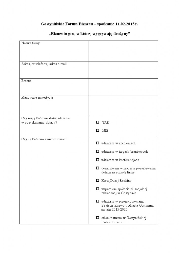 Kolejne spotkanie w ramach Gostynińskiego Forum Biznesu odbędzie się 11.03.2015 r. o godz. 15.00 w sali konferencyjnej Urzędu Miasta.
