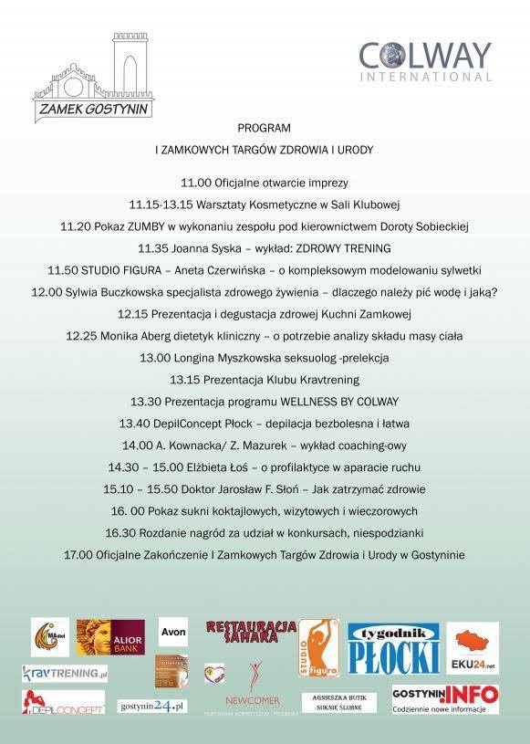 I Zamkowe Targi Zdrowia i Urody są współorganizowane z firmą Colway International, którą reprezentuje w Gostyninie Jolanta Śmiałkowska. Główną ideą organizowanych wspólnie Targów jest szeroko pojęta promocja zdrowego stylu życia, pielęgnacji urody i kondycji fizycznej. Na uwagę zasługuje panel naukowy, w którym z prelekcjami wystąpią nietuzinkowi przedstawiciele świata nauki ( Doktor Jarosław F. Słoń, Longina Myszkowska), medycyny naturalnej ( Elżbieta Borecka- Łoś), dietetyki ( Sylwia Buczkowska, Monika Aberg).