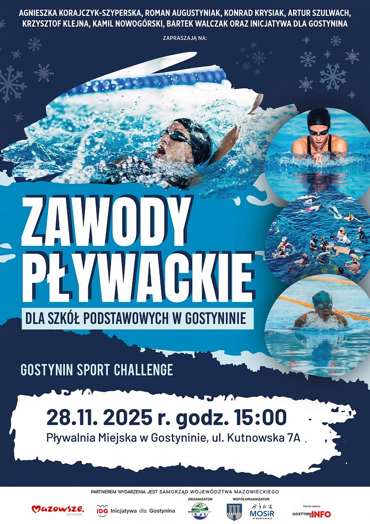 Zawody odbędą się 28 listopada 2025 roku o godz. 15:00 na Pływalni Miejskiej w Gostyninie przy ul. Kutnowskiej 7A.