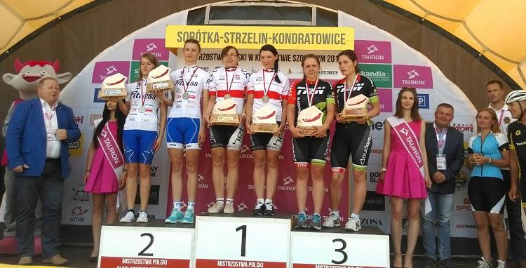 Przyznam, że nie jest to moja ulubiona konkurencja. Trasa była całkowicie płaska jak na czasówkę przystało z jednym nawrotem w połowie dystansu. Dodatkowo mocno uprzykrzający życie wiatr na otwartych przestrzeniach i brak możliwości schowania się przed nim dał się we znaki. Mimo wszystko stanęłyśmy na wysokości zadania i wywalczyłyśmy brązowy medal w jeździe indywidualnej na czas. W piątek jednak czekało na nas większe wyzwanie: start wspólny liczący 72 km w Sobótce. Trasa mocno interwałowa.