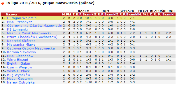 Ożarowianka Ożarów Mazowiecki | 1-0 | Mławianka Mława | 15 sierpnia, 17:00 |