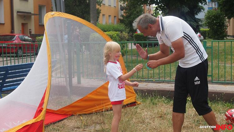 We wtorek (19 czerwca br.) na terenie przedszkolnego placu zabaw powstała specjalna Strefa Kibica, w której nieocenioną rolę pełnił Pan Marcin Mofina - trener Football Education Academy Gostynin. W przedszkolu królowały barwy biało – czerwone, było głośno i radośnie. Trener wspólnie z dziećmi podgrzewał atmosferę towarzyszącą bieżącym wydarzeniom, przeprowadził trening oraz zaprezentował kilka sztuczek piłkarskich.