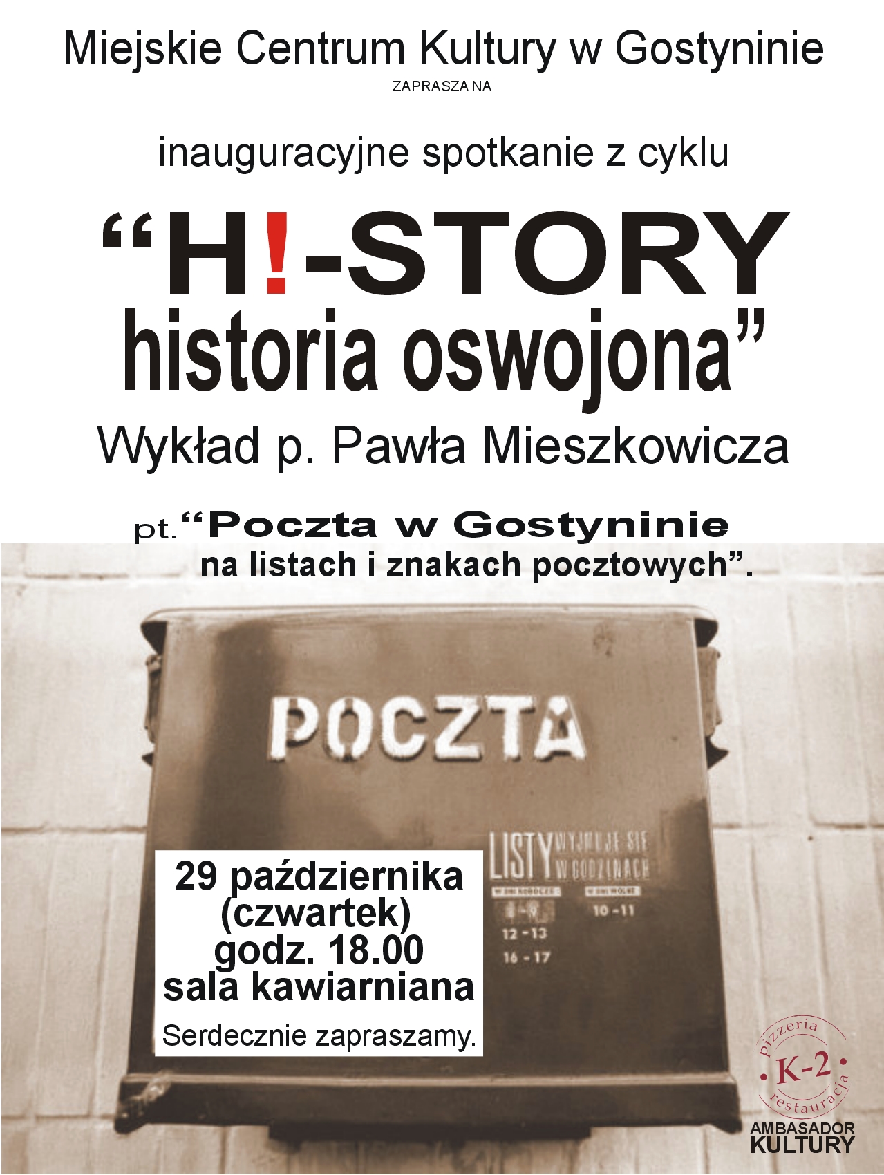Dla naszych gości wygłosi wykład pt. „Poczta w Gostyninie na listach i znakach pocztowych” w kawiarni Miejskiego Centrum Kultury 29 listopada (czwartek) o godz. 18.00. Wstęp wolny.
