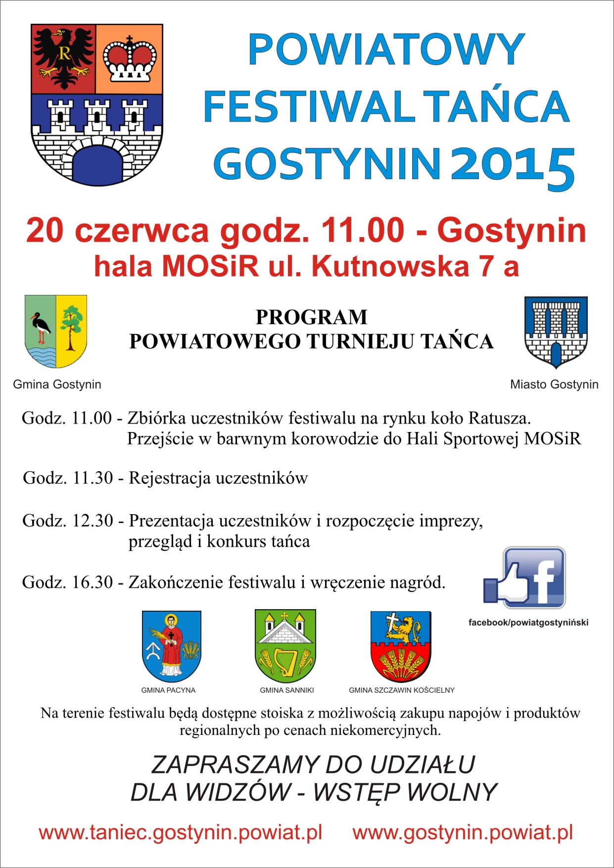 Zapraszamy wszystkich miłośników tańca i mieszkańców powiatu gostynińskiego na unikatowy i wyjątkowy festiwal sztuki tanecznej, który odbędzie się w dniu 20 czerwca 2015 r. w hali sportowej OSIR w Gostyninie. Festiwal będzie poprzedzony korowodem, który przejdzie ulicami Gostynina z tańcem i śpiewem.