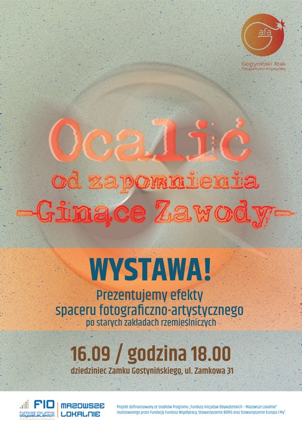 Gostyniński Atak Fotograficzno-Artystyczny zaprasza w najbliższy piątek, godz. 18:00, (dziedziniec zamkowy) na wystawę prac wykonanych podczas lub pod wpływem, spaceru fotograficzno-artystycznego grupy GAFA, po zakładach rzemieślniczych w Gostyninie.
