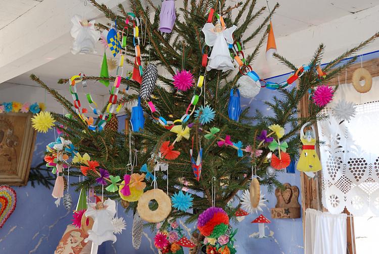 – Po II wojnie światowej, oprócz tradycyjnych ozdób, na choince zawieszano wykonane w czasie Adwentu pawie oczka, aniołki, mikołaje, pajacyki, karuzele, jeżyki, łańcuchy, gwiazdki. W dużej mierze używano w tym celu kupionych na targu lub w sklepie: papieru, bibuły, koralików, sreberek. Do użytku weszły wtedy najstarsze rodzaje bombek, np. muchomorki – tłumaczy etnolog Marcin Stańczuk.