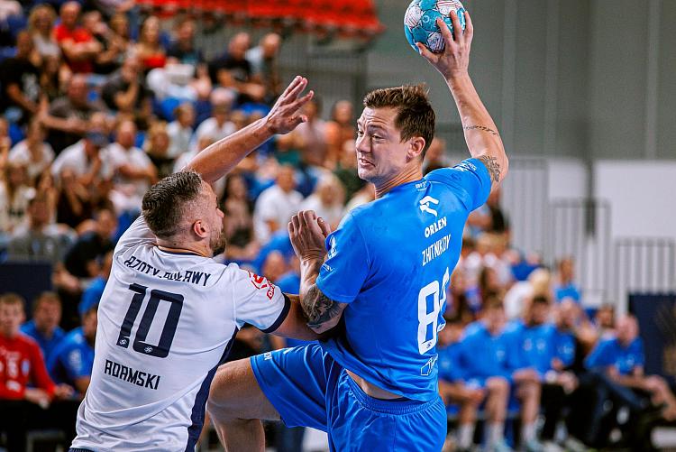 Spotkanie 3. kolejki ORLEN Superligi trafieniem na bramkę rywala otworzył Kacper Adamski. W pierwszym ataku pozycyjnym w wyniku interwencji Zembrzyckiego Nafciarze nie strzelili gola. Następnie ze skrzydła odpowiedziały Azoty, na co również z tej pozycji bramkę zdobył Przemysław Krajewski. Ponownie skutecznie po ataku ze skrzydła trafili gospodarze. Z kolei Wiślacy w wyniku faulu w ataku stracili piłkę, co wykorzystał Rafał Przybylski. W następnym ataku w rzucie na bramkę trafił Zarabec, a po błędzie rywala sytuacji bramkowej nie wykorzystał Gonzalo Perez Arce. Po skutecznej obronie Marcela Jastrzębskiego zespół z Płocka ponownie popełnił błąd w ataku nie zdobywając bramki i w 6 minucie spotkania Azoty prowadziły 4:1. Celnie z rzutu z biodra natomiast rzucali miejscowi. W kolejnej akcji 2-minutowe wykluczenie otrzymał Rafał Przybylski, a podyktowany rzut karny wykorzystał Przemysław Krajewski. Po chwili Leon Susnja przechwycił piłkę, którą w pustej bramce umieścił Tomas Piroch, ustalając stan meczu na 5:3. Następnie gospodarze popełnili błąd kroków, jednak zespół gości nie wykorzystał tej sytuacji. Z kolei za faul w ataku na Gonzalo Perezie, 2-minutową karę otrzymał Kacper Adamski. Mimo tego Niebiesko-biało-niebiescy w następnej ofensywie faulowali w ataku tracąc piłkę.