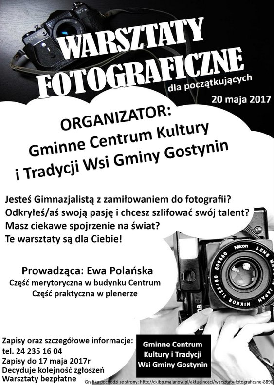 Gminne Centrum Kultury i Tradycji Wsi Gostynin zaprasza na warsztaty fotograficzne z Ewą Polańską.