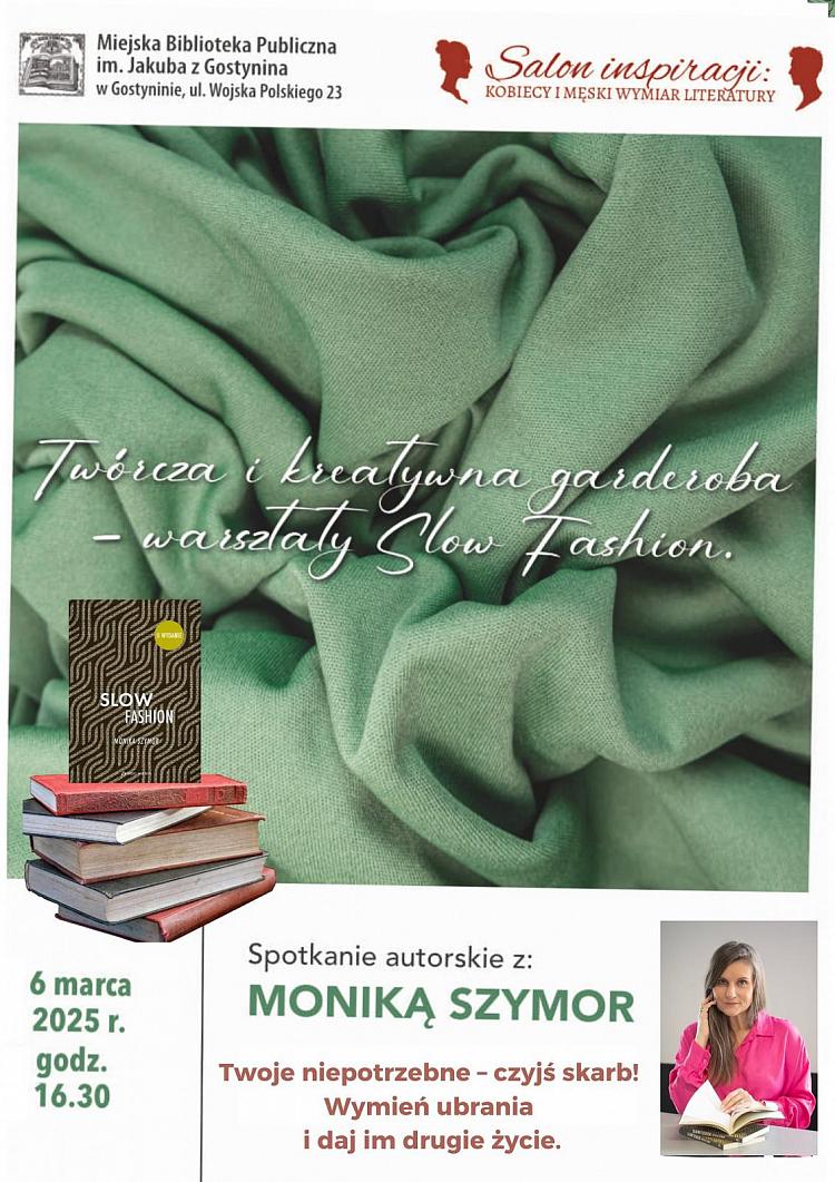 Miejska Biblioteka Publiczna im. Jakuba z Gostynina zaprasza wszystkich mieszkańców na wyjątkowe wydarzenie w ramach cyklu "Salon inspiracji: kobiecy i męski wymiar literatury". Już 6 marca 2025 roku o godzinie 16:30 odbędą się warsztaty Slow Fashion połączone ze spotkaniem autorskim z Moniką Szymor.