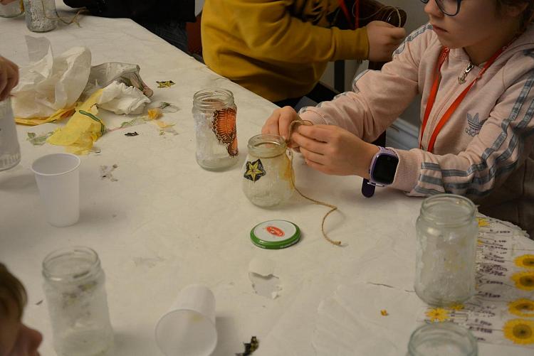 Ozdabianie szklanych pojemniczków metodą decoupage również spotkało się z zainteresowaniem. Był też czas na zaczerpniecie świeżego powietrza podczas spaceru.