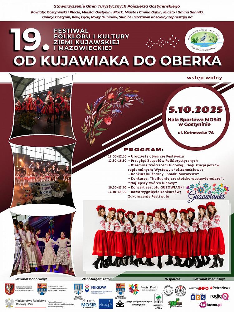Już 5 października w Gostyninie odbędzie się wyjątkowe wydarzenie dla miłośników tradycji i folkloru – 19. Festiwal Folkloru i Kultury Ziemi Kujawskiej i Mazowieckiej "Od Kujawiaka do Oberka".