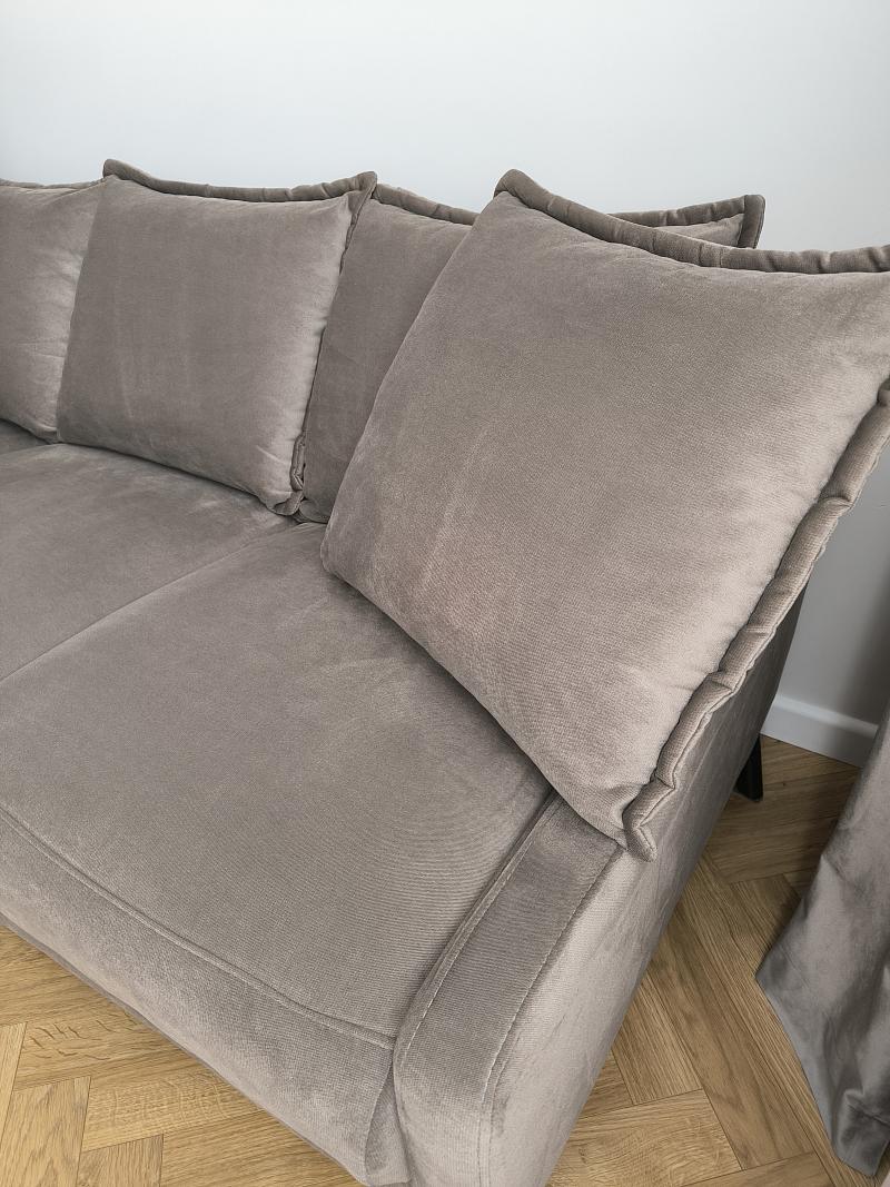 - Tkanina: elegancki welur – miękka, przyjemna w dotyku, łatwa w utrzymaniu