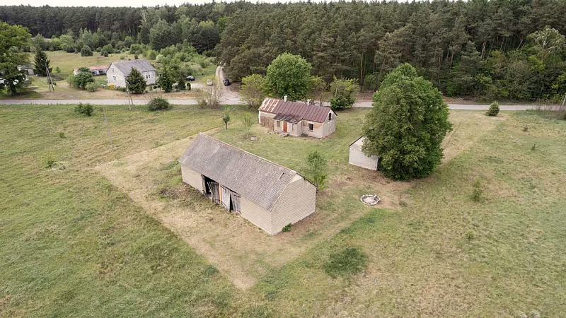 Na działce o powierzchni 2600 m2 znajduje się stary budynek mieszkalny o powierzchni 85 m2 składający się z trzech pokoi i przedsionka ,pomieszczenie gospodarcze 35m2 oraz murowana stodoła 133m2.
