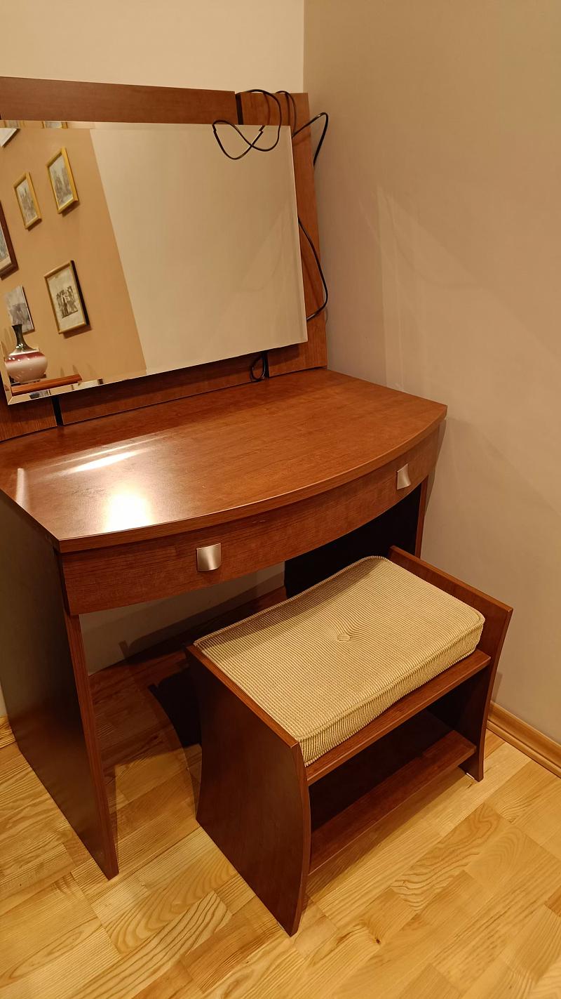 Sprzedam razem lub osobno. Szafka pod telewizor 150 zł, komoda 400 zł., kanapa 300 zł., toaletka z lustrem podświetlanym 300 zł.